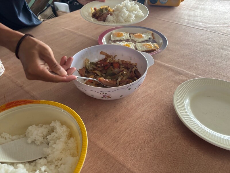 ご飯は1日3回、現地スタッフのうちの1人の、お母さんが作ってくれます。